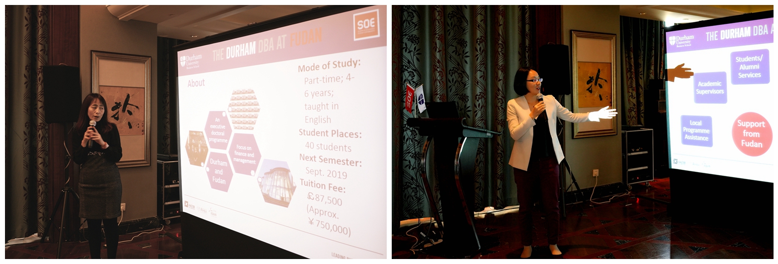 李丹教授——复旦-杜伦工商管理博士学位(DBA)项目复旦方项目总监分别向与会者介绍了项目的基本信息,以及双方对项目投入的资源与支持。