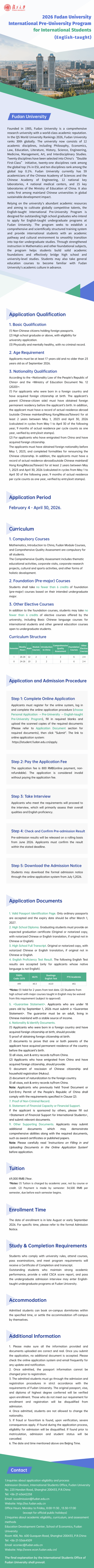 上一篇:2026年复旦大学外国留学生预科项目招生简章(英文授课)