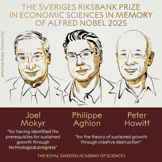 2025年,瑞典皇家科学院宣布将诺贝尔经济学奖授予乔尔·莫基尔(Joel Mokyr)、菲利普·阿吉翁(Philippe Aghion)和彼得·豪伊特(Peter Howitt),以表彰他们“阐明了创新驱动的经济增长机制,为理解现代经济繁荣提供了新的理论基础”。
