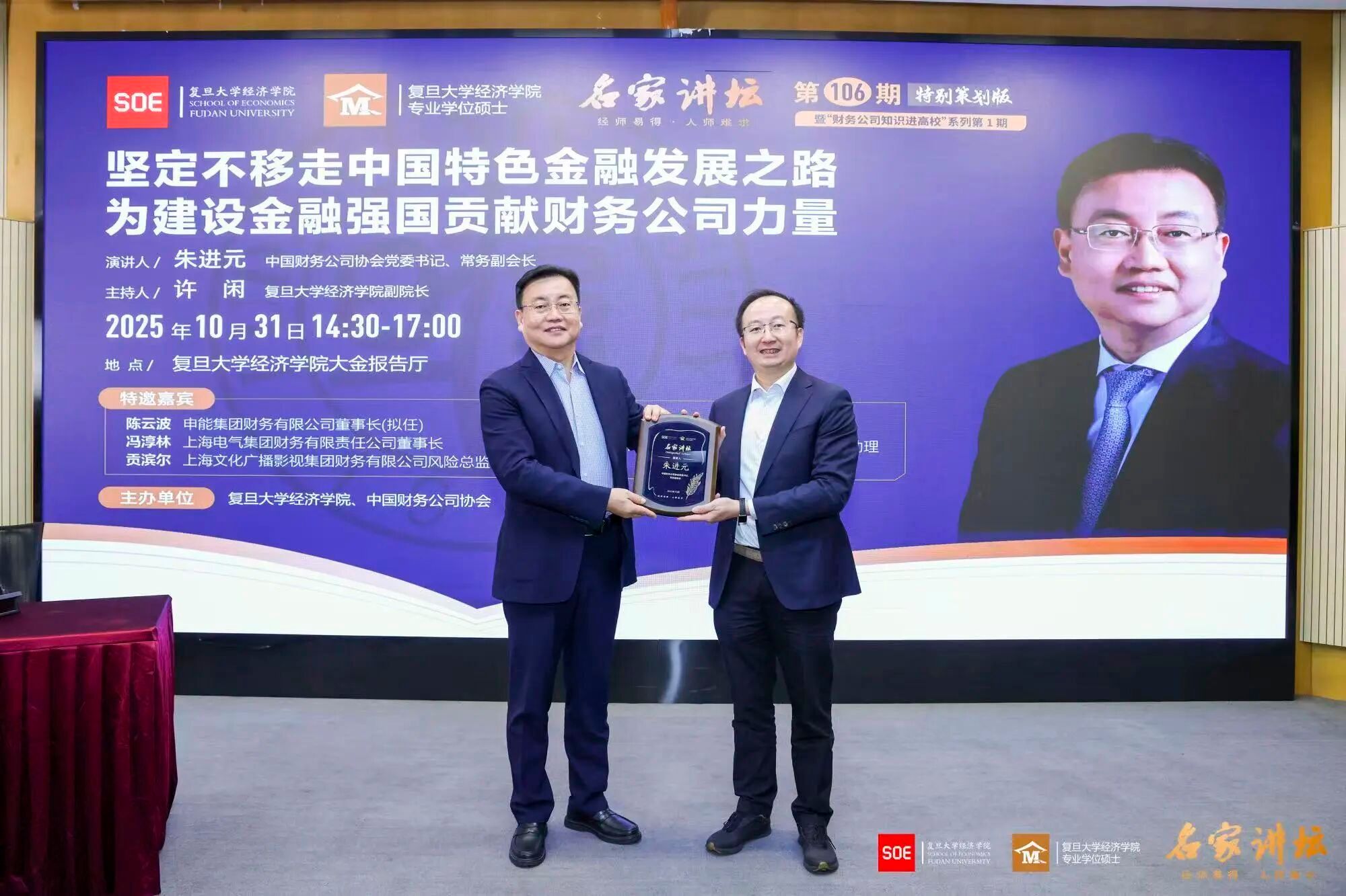 朱书记分享的监管与从业经历更戳中思考:财务公司的创新,绝非脱离风控的冒险,而是在合规框架下深挖服务潜力。结合复旦经院的学术训练,我愈发明白:金融研究不能悬浮理论,需紧扣中国国情,像财务公司这样的“特色金融单元”,正是理论与实践共生的样本。未来,愿以所学,为金融强国建设添砖加瓦。——税务专硕周同学