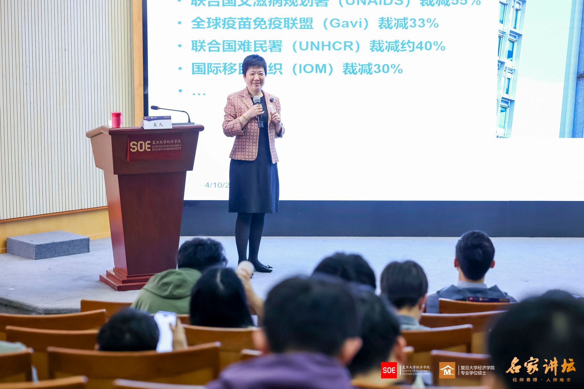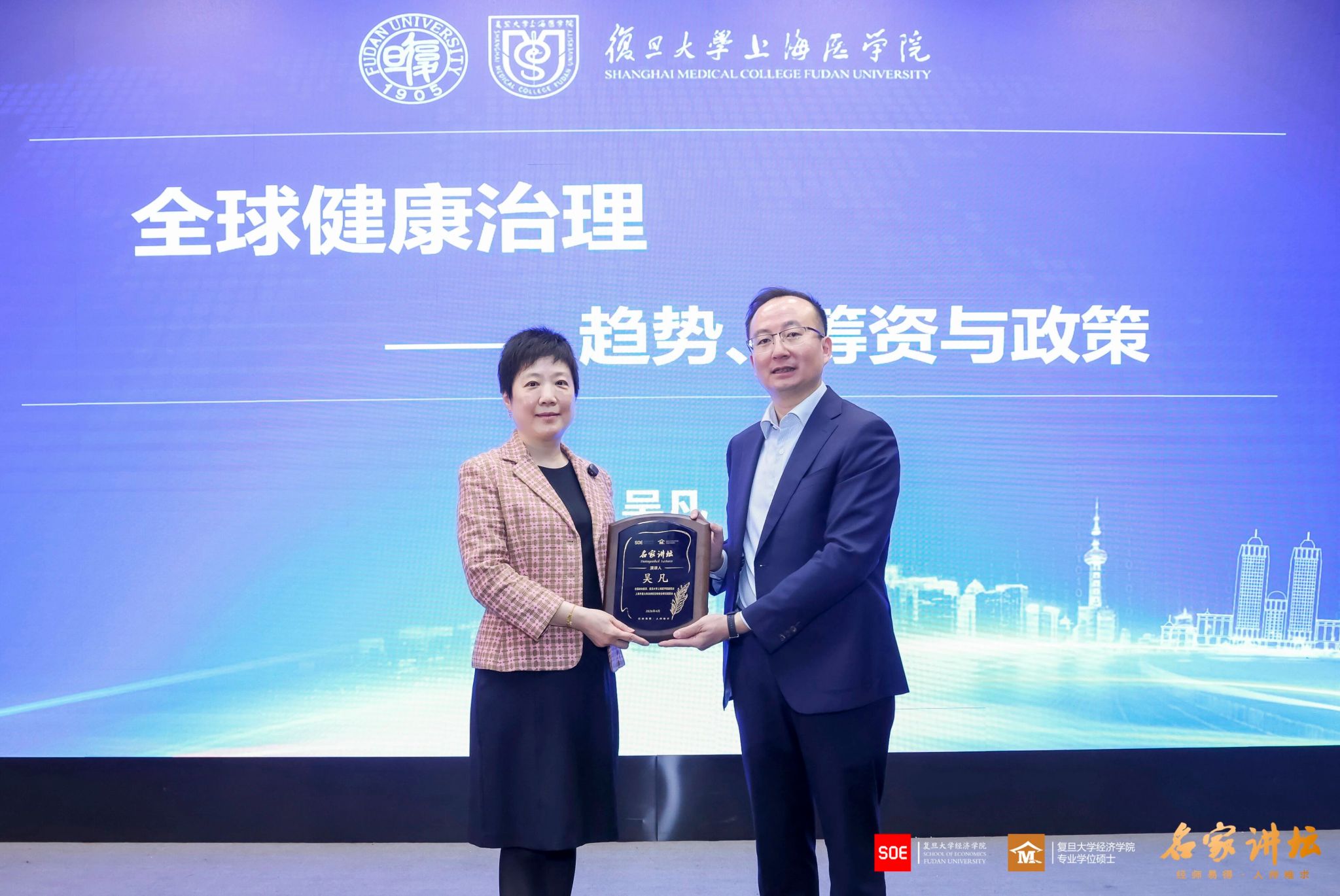 “名家讲坛”第116期、本学期第六次课程在大金报告厅开讲。特邀复旦大学上海医学院吴凡教授开展专题分享,以“全球健康治理 —— 趋势、筹资与政策”为主题,系统解读全球健康领域的核心变革、关键挑战与未来走向。复旦大学人妻