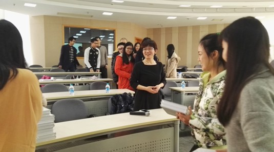 接下来,陈冬梅老师组织教师代表向同学们赠书。除了保险教指委的赠书,中德安联人寿保险公司向同学们赠送了公司发行的英文杂志。同学们接过老师所赠书籍并表达了深深的感激之情。赠书活动在欢快的气氛中进行,活动最后,全体出席的教师及学生进行了合影留念。