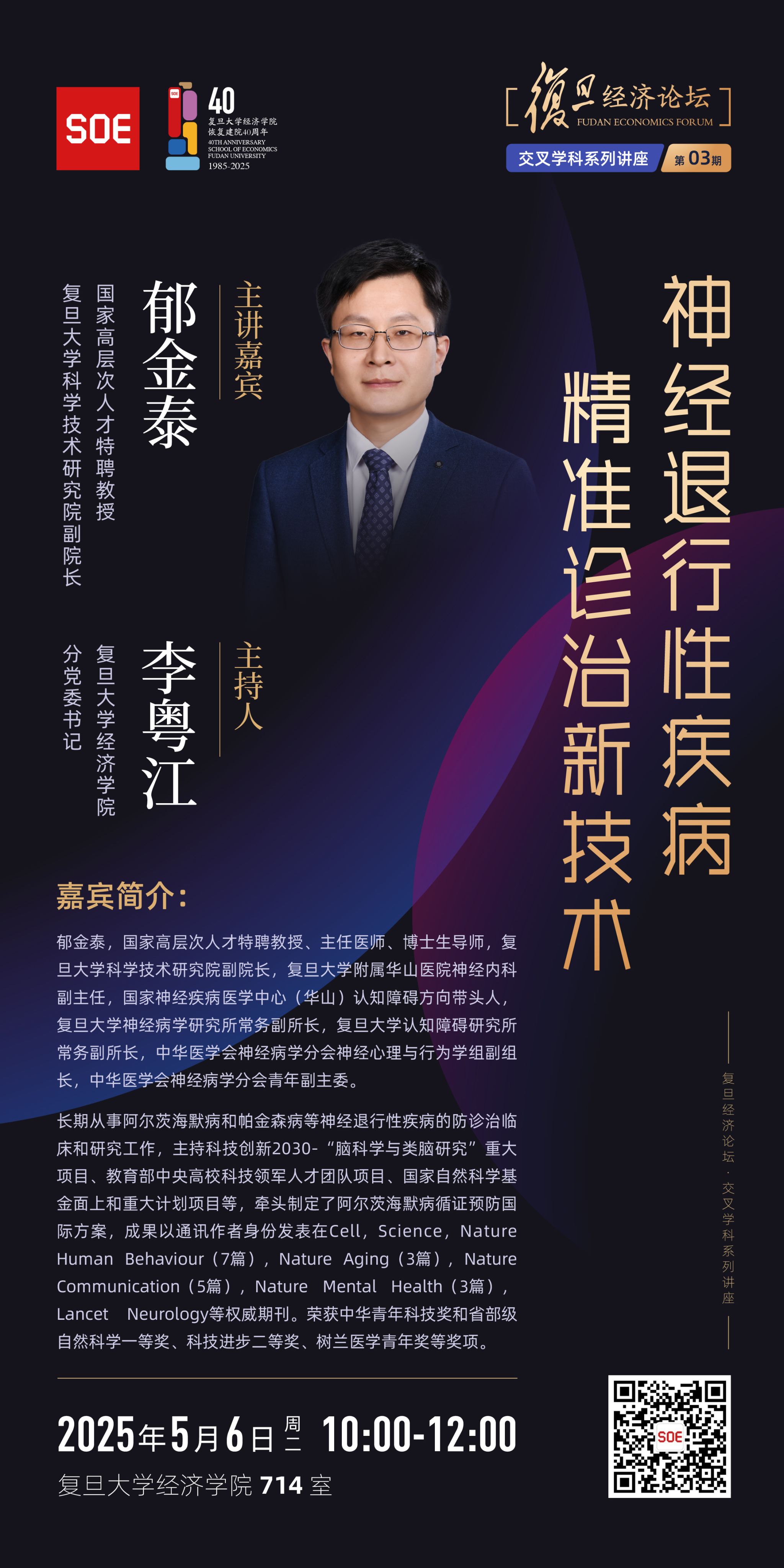复旦经济论坛 交叉学科系列讲座第03期:神经退行性疾病精准诊治新技术