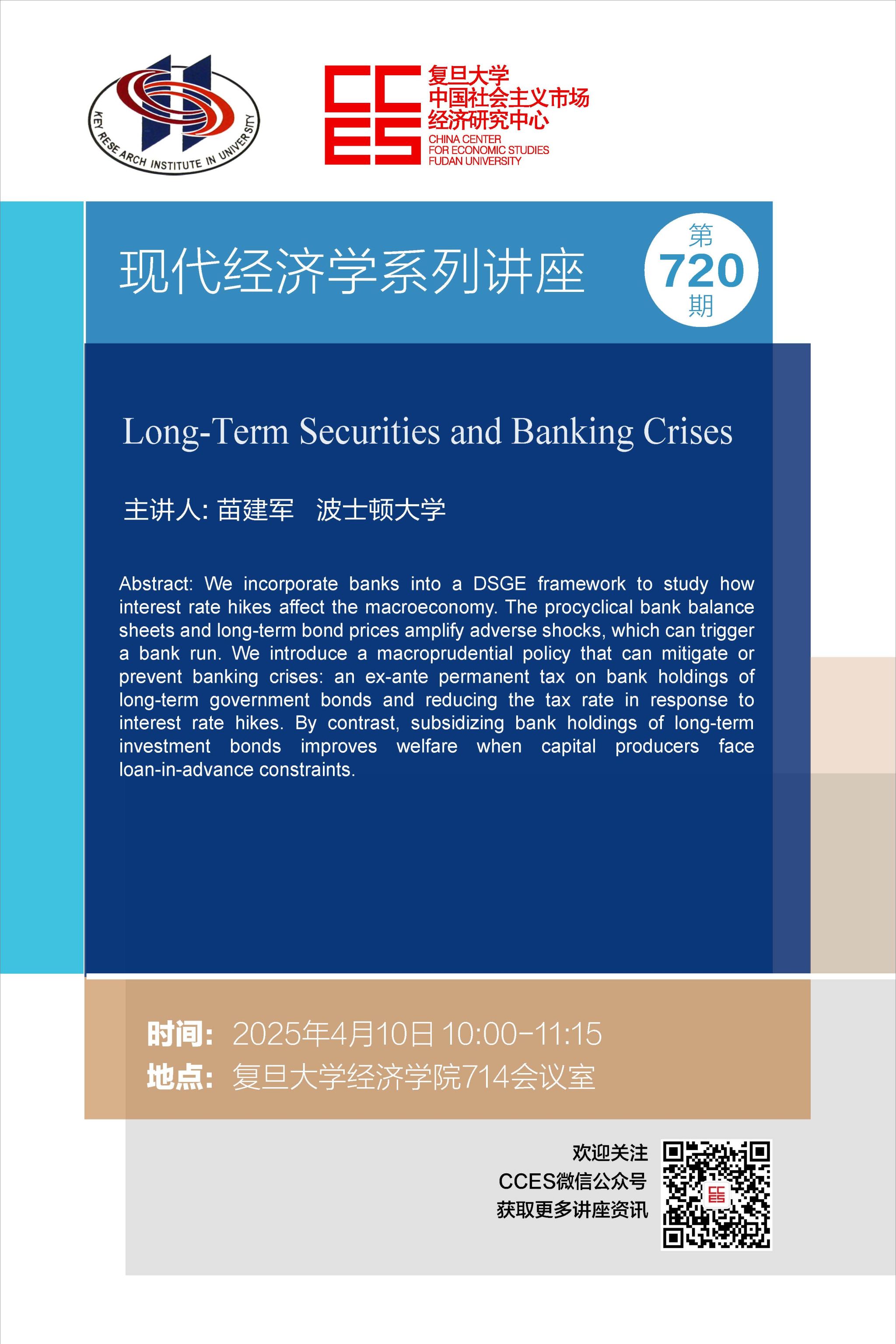 现代经济学系列讲座720期:Long-Term Securities and Banking Crises