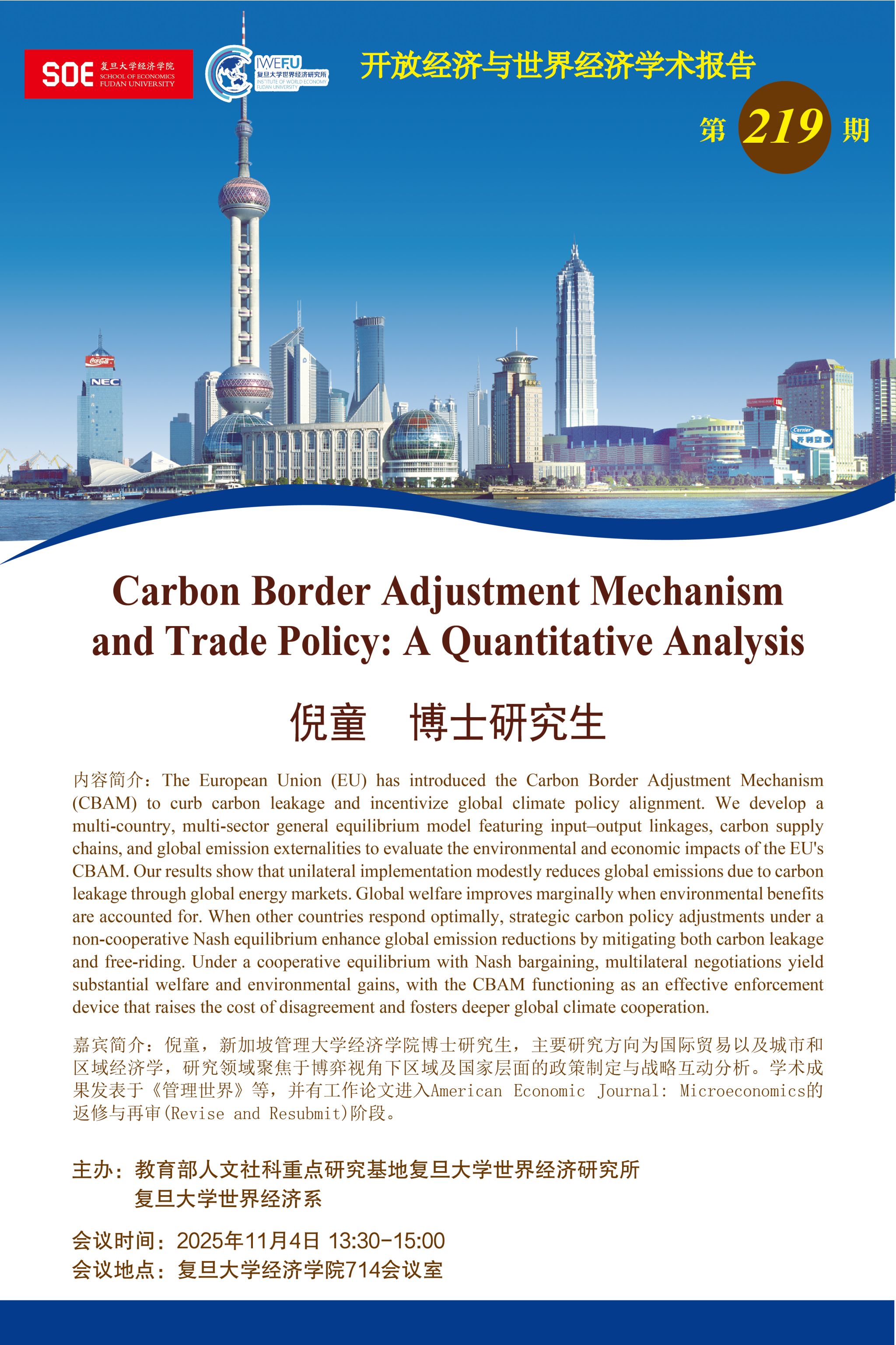 上一篇:复旦大学世界经济研究所开放经济与世界经济学术报告第220期:Local Policy Composition and Spatial Misallocation in China