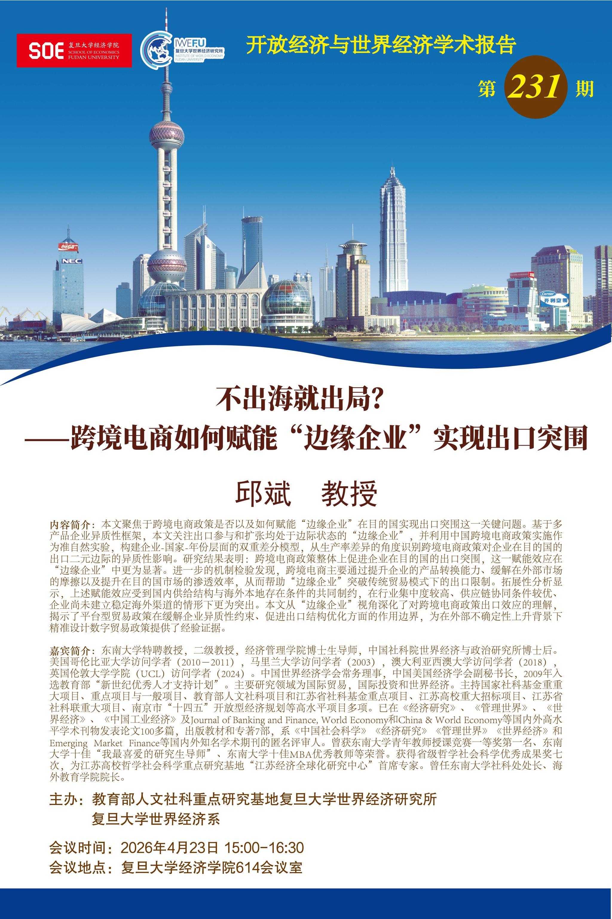 复旦大学世界经济研究所开放经济与世界经济学术报告第231期:不出海就出局?——跨境电商如何赋能“边缘企业”实现出口突围