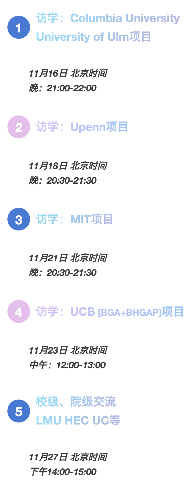 分享会将邀请正在或已完成海外交流、访学项目的学长学姐们为大家带来精彩的分享!同时Q&A环节,同学们也可以开麦与学长学姐们展开实时交流,了解你最想知晓的海外交流资讯!