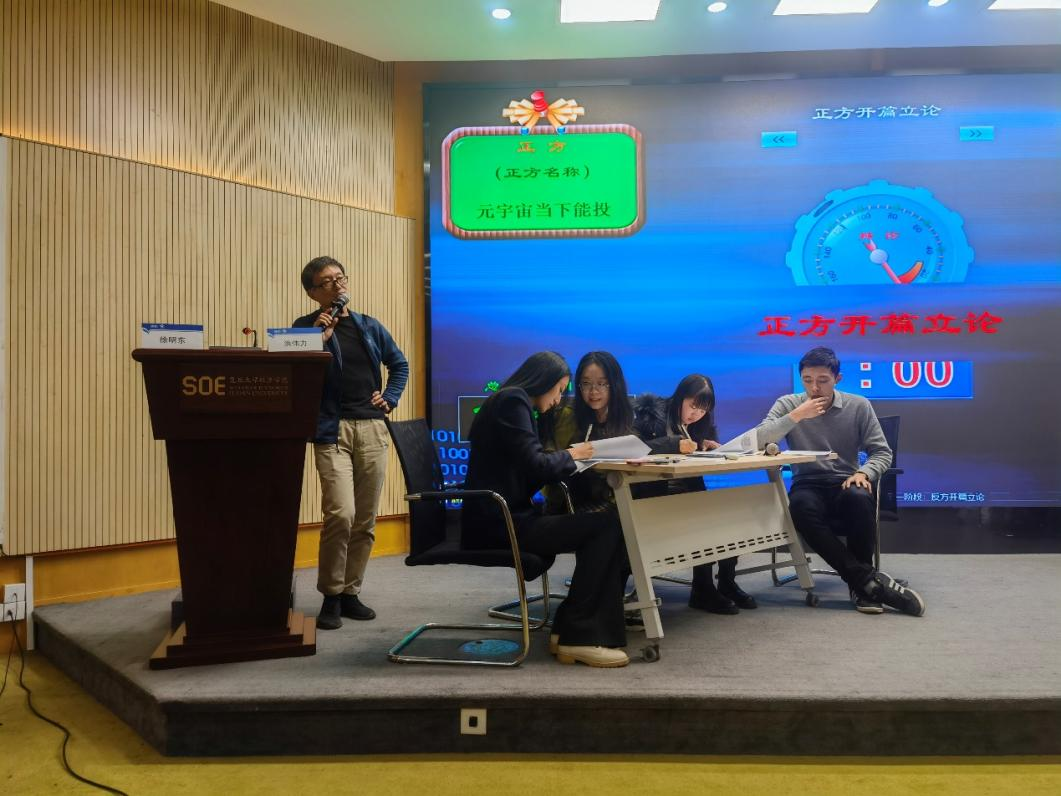 本次课程一改往年传统的课堂展示形式,采取新颖的辩论方式,融合洪老师本学期的授课内容,共同讨论“元宇宙项目当下能不能投”的主题。
