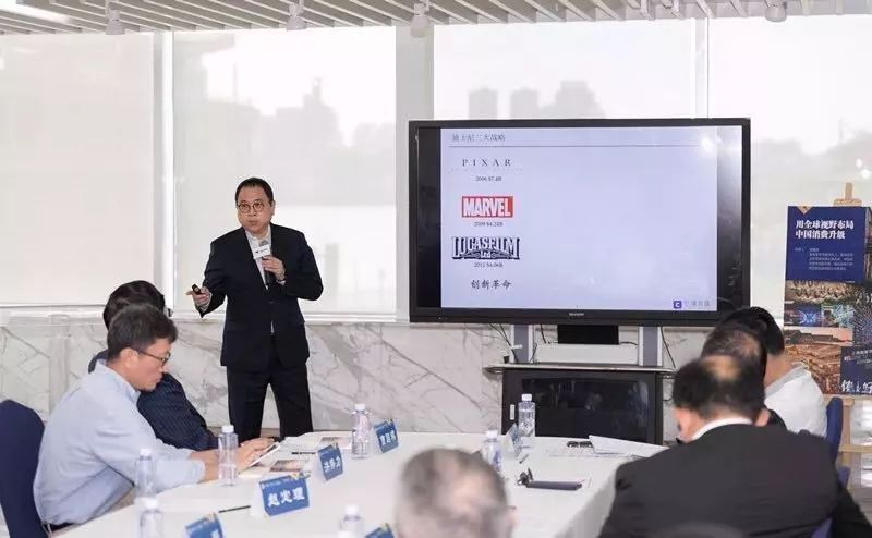第一位分享嘉宾为上海世像文化传媒有限公司主席张志忠先生,作为前华特迪士尼大中华区主席,张总以“IP在文创产业的角度和作用——从迪士尼、漫威到黑马”为题做了演讲。张总首先分享了迪士尼的成功轨迹,表示迪士尼在过去十年业绩快速增长,市值超过1500亿美金,以此向在场的校友提出了一个疑问,即迪士尼成功的源头在哪里?他认为,迪士尼的成功源于2005年开始的三大战略,即创意革命、科技升级和全球化。通过收购皮克斯、漫威和卢卡斯影业,迪士尼完成了创意革命的复兴,迪士尼自身的动画工作室也推出了《冰雪奇缘》等经典作品。同时,迪士尼在十年前便前瞻性地看到了由科技升级带来的内容分发渠道重构,除了拥有ESPN等有线电视频道外,也推出了流媒体视频平台Hulu。此外,迪士尼的成功也离不开全球化,将IP变为全球化的泛娱乐大IP。