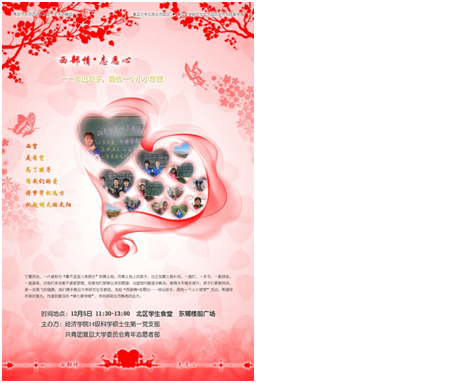 (2)加强志愿服务,创建服务型党支部。各支部应努力创建服务型党组织,发扬党的优良传统,做好党员联系和服务群众工作,开展“党员服务日”和各类志愿服务、公益活动等,拓展服务内容,提高服务实效。本年度,学院各支部均结合专业特色组织党员开展了集体性志愿服务活动,密切党群关系,切实增强党支部服务群众的能力。同时,每位党员也结合自身特点,主动开展了个人志愿服务活动。2014级科学硕士第一支部成功与二附中开展共建活动,2014级科学硕士第二支部开展了爱心义卖活动,2014级非金融专硕联合党支部开展了“食堂监督岗”志愿服务,2014级本科生支部开展了“探访、服务半身瘫痪学生张震”活动,2014级科学硕士第一支部开展了“西部情·志愿心”爱心认捐活动,2013级经济、世经联合本科生支部赴“民星幼儿园”、杨浦区老年福利院开展志愿服务,2014级本科生支部开展了“服务·感恩宿管阿姨”活动,2013级国金、财保联合本科生党支部赴宝山区淞南镇阳光职业康复援助基地开展志愿服务,等等。