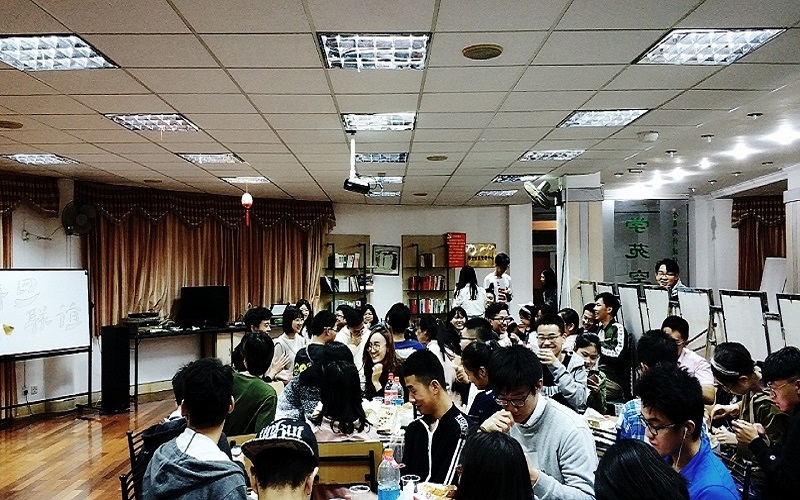 所有小组完成模型拼装后,志愿者带领大家前往同济大学,在同济西南八教室中的冷餐会上,桌上各式各样的美食让同学们大呼过瘾。在大家享用美食的同时,一场零食竞拍拉开了联谊晚会的序幕。之后,抢凳子、你演我猜等游戏环节将晚会推向了高潮。最后,晚会在一场伴着悠扬音乐的现场舞蹈教学中圆满结束。