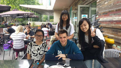 13:00,同学们在正大体育馆门口集合,一起乘坐10号线地铁来到了新天地。初夏阳光正好,连空气中都带有夏天的味道,就这样,我们开始了定向越野的小比赛。