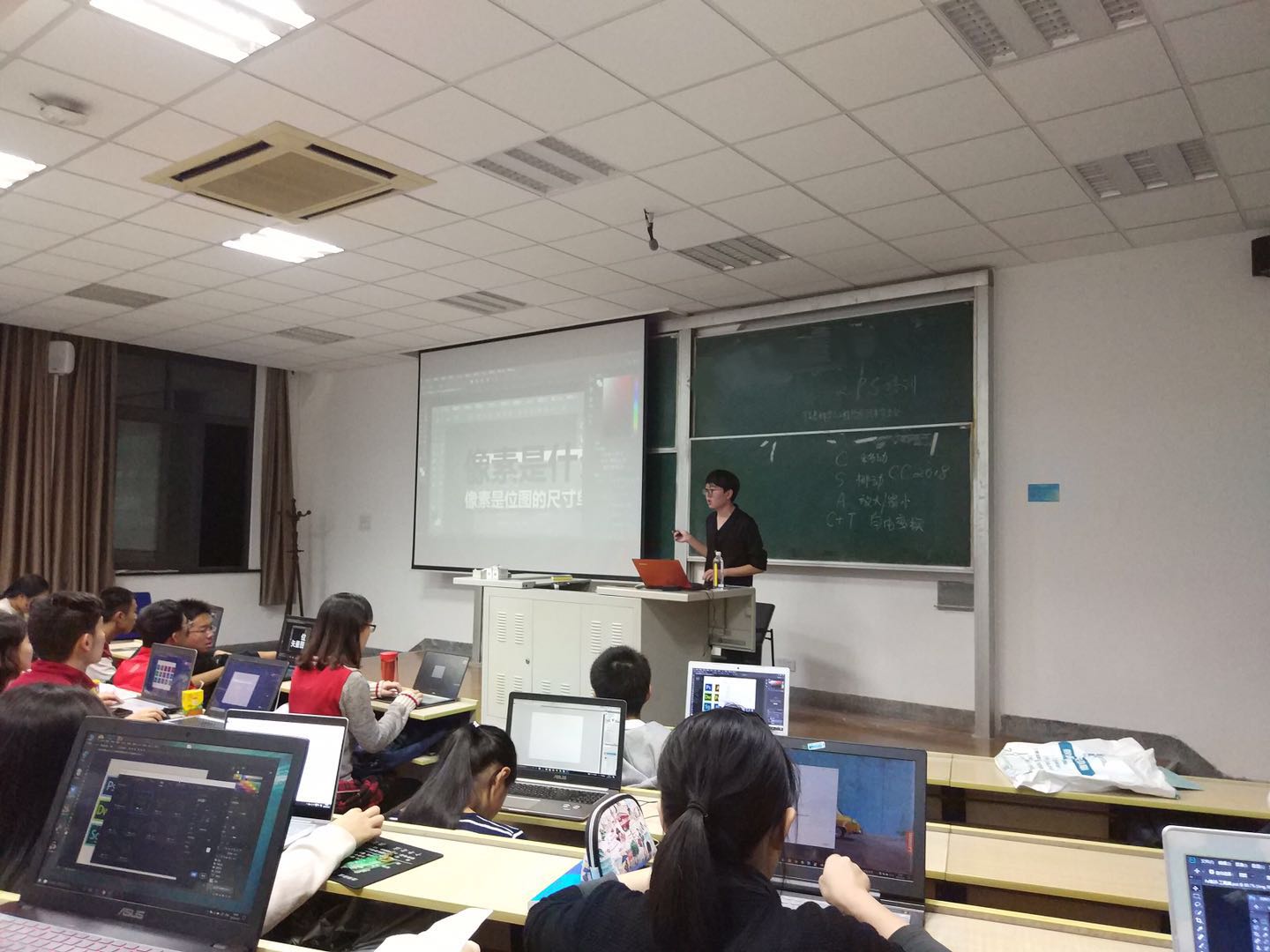 2017年11月7日晚上18:30,第27期“经粹”团校的学员们齐聚第三教学楼H3206教室,参加由信息学院信锐培训主办的Photoshop培训课程,此次培训由曾担任信院团学联宣传部部长的15级电子工程系的李知勇同学主讲。