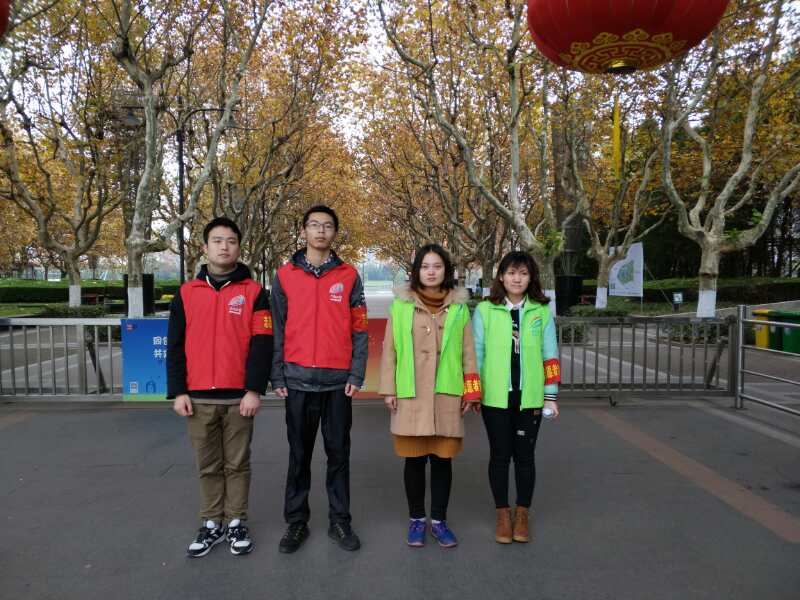 的同学们为主的志愿者们在国权路地铁站集合,由领队带领前往世纪公园。志愿者们经过世纪公园工作人员的简单指导后,套上志愿者背心、戴上袖章,从9:00开始志愿工作。志愿者们的工作是在检票口和入口站岗,协助老人和学生购买优惠票,从导览册上获取信息为游客指路,并提醒携带违禁物品的游客寄存物品,帮助工作人员维护入口处的游客秩序。在这个过程中志愿者和来自各个地方、各个年龄层的游客进行了短暂交流,献上热情的笑容与温情的帮助。利用间隙,领队组织志愿者们留下了难忘的合影。