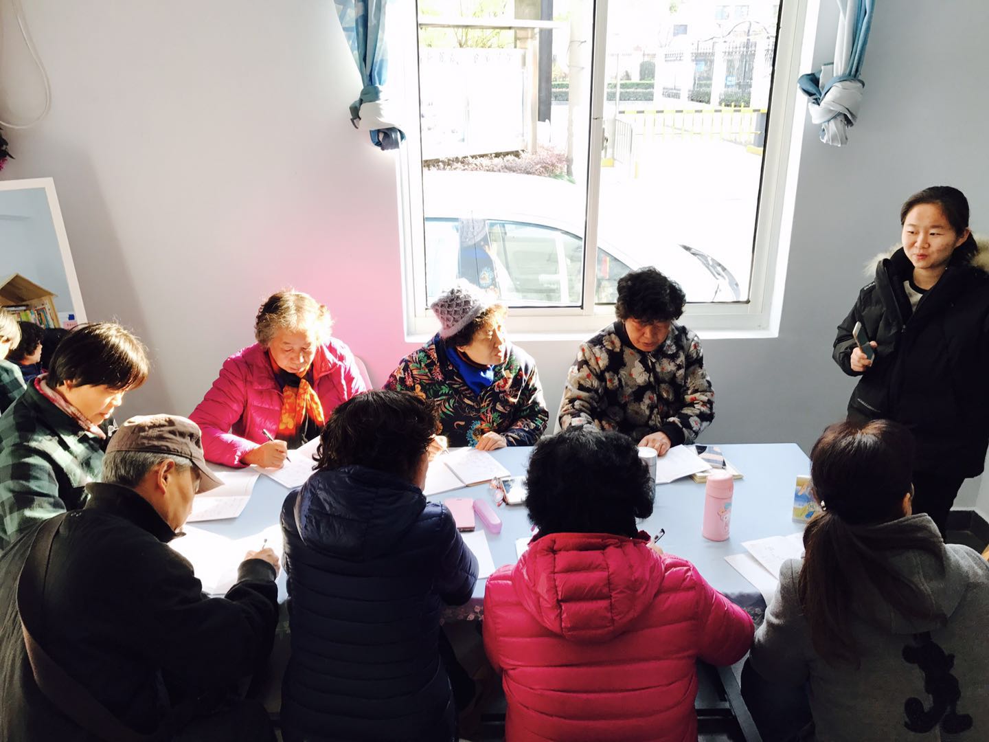 吴雨朔:接触到他们,让我觉得非常震撼。他们从我们一进去就开始反应自己学习上的问题,积极去沟通,尽力去解决,每个人手里都拿着自己之前做好的笔记进行着复习,课堂中也非常的认真主动。这样一个老年群体对于新知识的不畏惧给我很大触动,也许他们接受的很慢,但他们身上那种活力却很有感染力。我觉得我只是教给他们了几个单词,但他们却传递了一种积极向上的态度给我,一次非常有意义的志愿活动。