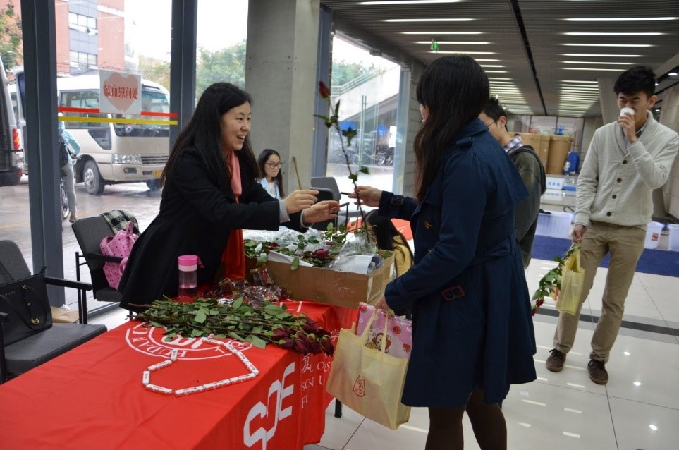 学生工作组张馨老师给同学们送上玫瑰花、巧克力等慰问品,并对同学们的爱心表示感谢。赠人玫瑰,手有余香。深秋里一碗暖暖的乌鸡汤为此次献血活动画上了温馨的句号。