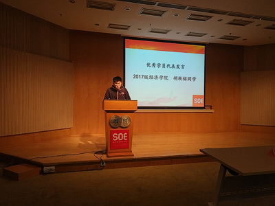 接下来,胡轶铭同学作为优秀学员代表发言,和各位学员一同分享了他对于团校的思考与感悟。他谈到,为期一个月的团校虽然结束了,但在团校中所收获的知识技能、思考态度以及精神品质将会一直贯穿于日后的学习生活