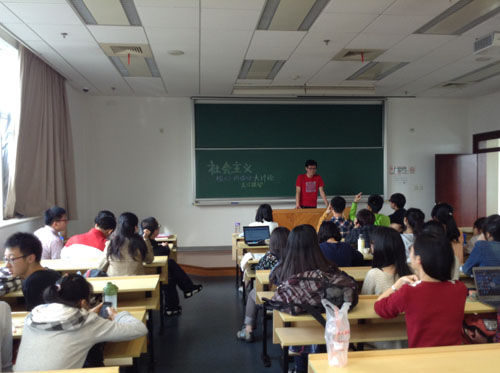 12级世界经济系于2014年5月 7日下午16点开展了“经济学人的责任•奉献•成长—社会主义核心价值观”大讨论主题班会。