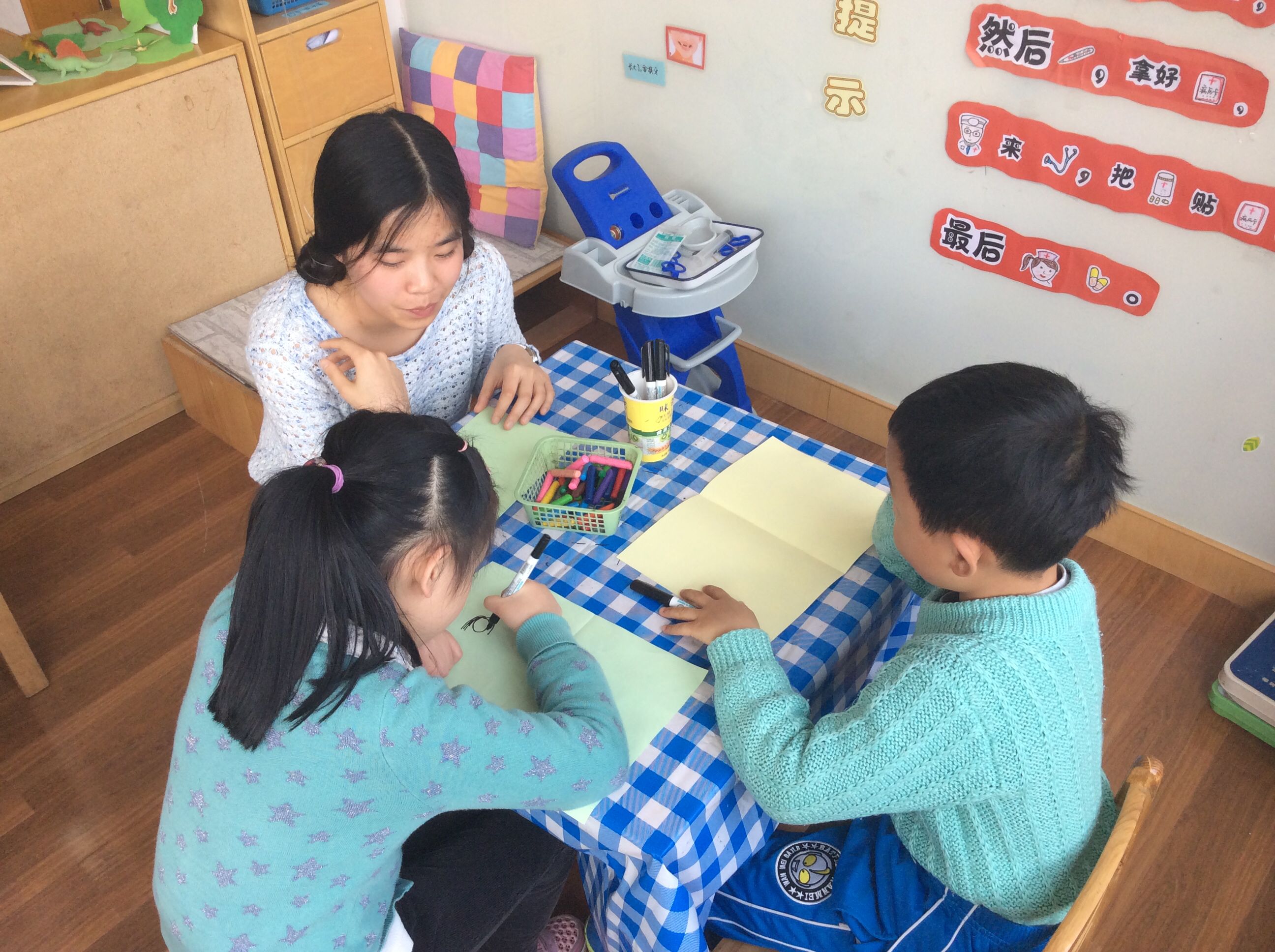 首先刘念同学组织话题与小朋友们一起讨论了关于即将到来的“母亲节”,谈到“母亲节是哪一天”,“什么话可以代表对妈妈的爱的感谢”等问题,小朋友们积极举手发言,现场十分热闹。后来我们就拿出精心准备的彩色卡纸,组织孩子们分组进行“给妈妈的贺卡”手工制作课堂。陈亦新、孙雨琦、澹台文赟同学分别照顾几个小组,与孩子们一起设计贺卡,涂色或者写字,都一起分享着这份感恩的快乐。最后还进行了优秀的作品进行了评比和奖励,每个孩子都有拿到事先准备的小礼物,欢乐的氛围一直持续到放学。
