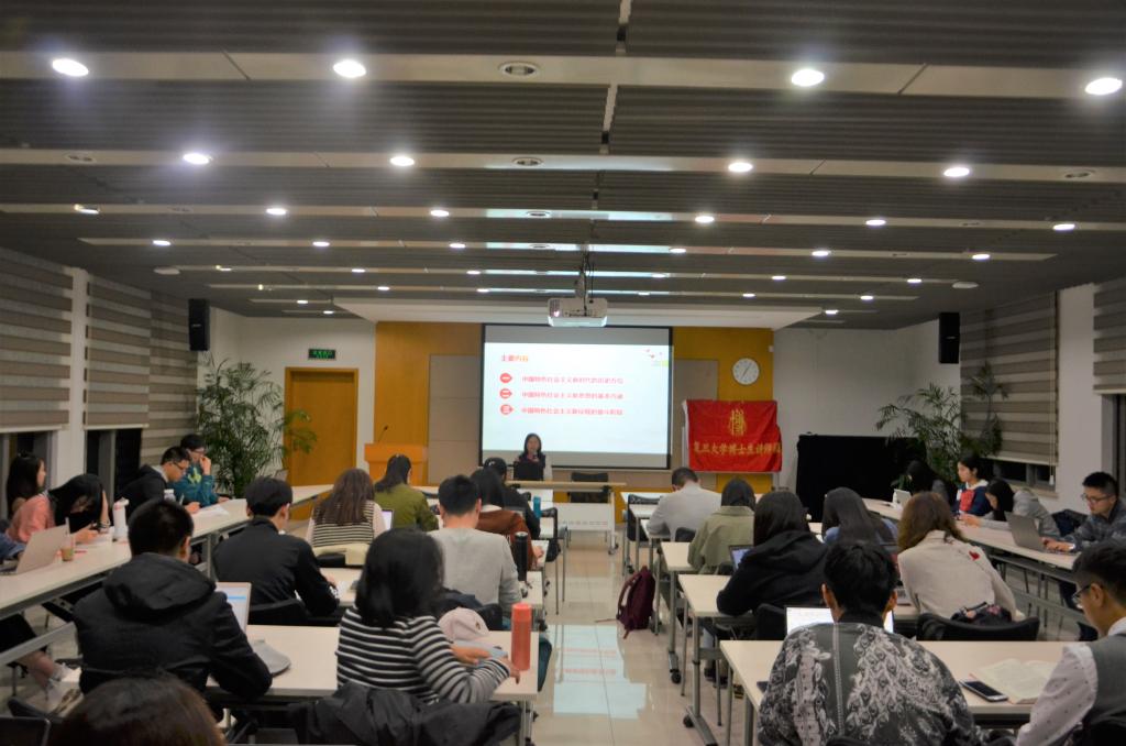 2019年4月16日晚,“学习十九大精神,坚定中国特色社会主义道路自信”主题讲座于泛海楼801室成功开展,本次讲座由复旦大学博士生讲师团曹晶老师主讲。