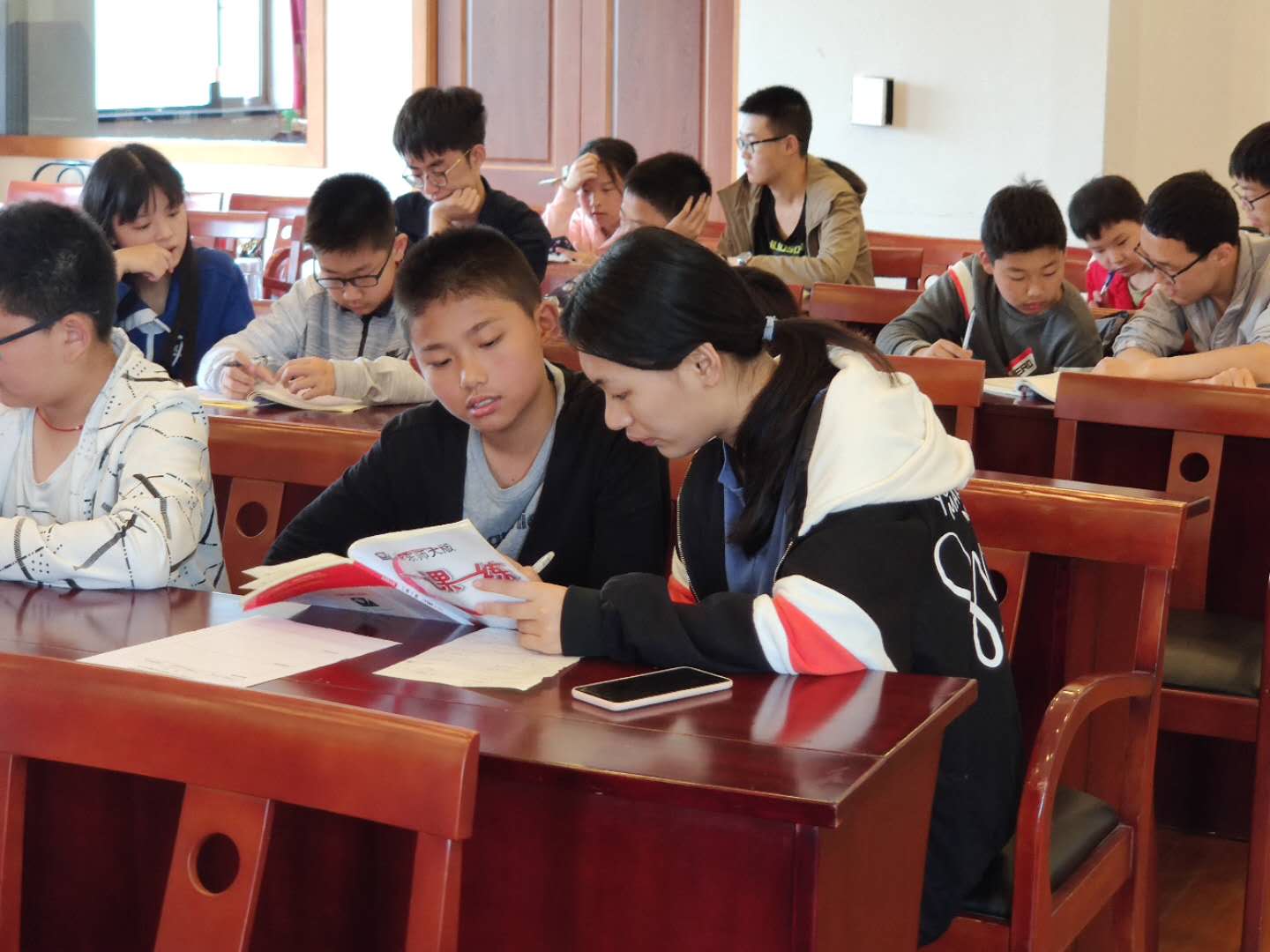 张智昊同学:参加活动之前还有些忐忑,担心自己可能会因为忘记太久以前学过的知识而闹笑话。事实证明这些顾虑都是不必要的,小朋友们在听题目讲解时都很认真,尽管有时候讲到一半会卡壳,他们也会耐心等我们组织好语言再接着讲。一个多小时的活动下来,讲到最后甚至会觉得有些累,也就不禁会对自己初中时的老师多一分敬佩之情。此次经历也应该是大学期间一次难得的体验了。