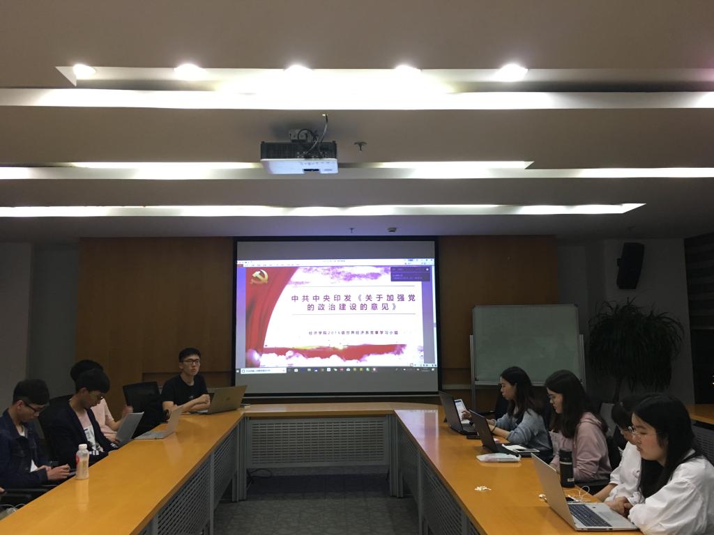 2016级世界经济系党章学习小组于2019年4月23日积极开展有关学习《关于加强党的政治建设的意见》的活动。本次会议由组长刘褀轩主持,学习小组成员们准时参加了会议。