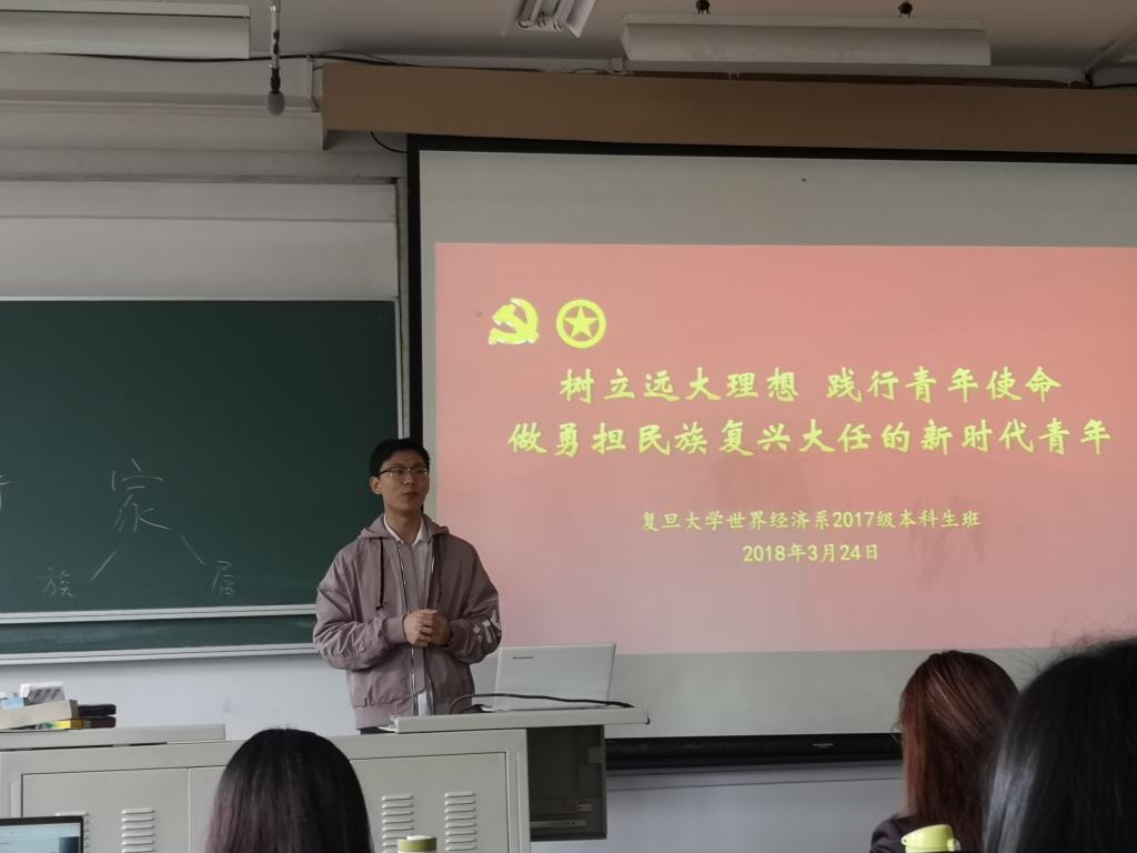 世界经济系2017级本科生班于4月30日下午召开以“树立远大理想践行青年使命——做勇担民族大任的新时代青年”为主题的班会,世界经济系2017级本科生班全体同学参加本次班会。