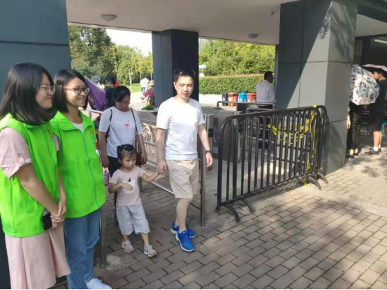 陈辉煌:下午四点多,返回1号入口的路上,世纪公园里起了凉凉的风,游客也渐渐稀疏,三三两两的老人带着小孩悠闲散步,一派宁静、轻松,像谈笑风生的告别。回想今日的志愿服务,竟也有几分像这“轻松”的场景——穿着绿马甲站在7号检票口旁,与其说作为一个局外人执行着辅助工作人员引导游客入园的工作,不如说化身为游客——白发苍苍而精神矍铄的老人、机灵可爱的小朋友、意气风发的年轻人——中的一份子,烟火气中的一员,礼貌而亲切,做一点力所能及的事,传递生活中微小而值得珍惜的美好。感谢世纪公园志愿者活动。