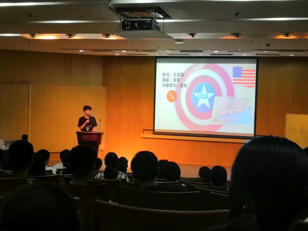 秋雨过后的夜晚凉意袭人,但同学们心中却隐隐有些燥热,对接下来的破冰之旅翘首以盼。同学们早早地来到大金报告厅,安静地等待着活动开始。班会在余思娴辅导员的殷切寄语中拉开帷幕。同学们以寝室为单位轮流走上前台,自我介绍,男寝女寝各显神通,每个寝有每个寝的特色:有的寝用脑洞大开,极具创意的名字吊足了大家的胃口;有的寝通过无与伦比而让人叹为观止的ppt惊艳了观众的目光;还有的寝则是引吭高歌,用余音绕梁、三日不绝之声赢得众人的阵阵喝彩。最令人印象深刻的还数来自全国各地乃至世界各地的小伙伴们对自己家乡独特风情的如数家珍的介绍,虽然不过短短几分钟,却使人如身临其境,神往不已。来自新疆的同学介绍了新疆美食如大盘鸡、手抓羊肉、抓饭、烤羊肉串、炒拉条……话音未落,台下咽口水声清晰可闻;来自陕西的同学则给同学们上了一堂颠覆以往认知的地理课,他如是说道:“很多人以为黄土高原都是黄土,其实不然,像我的家乡就是绿树成荫,一片一片的森林”;还有来自宁夏的同学解答了同学们对宁夏风土人情的疑惑,并善意地提醒大家不要随意地去摸马路上的大象。月光下,秋夜里,三班大家庭的成员们终于了解了彼此,敞开心扉,把酒言欢。最后,时值祖国诞辰七十周年,在余思娴辅导员的提议下,全体同学佩戴团徽,站上了报告台,喊出了对祖国生日的祝福。在这真诚的祝福声中,破冰班会圆满结束。