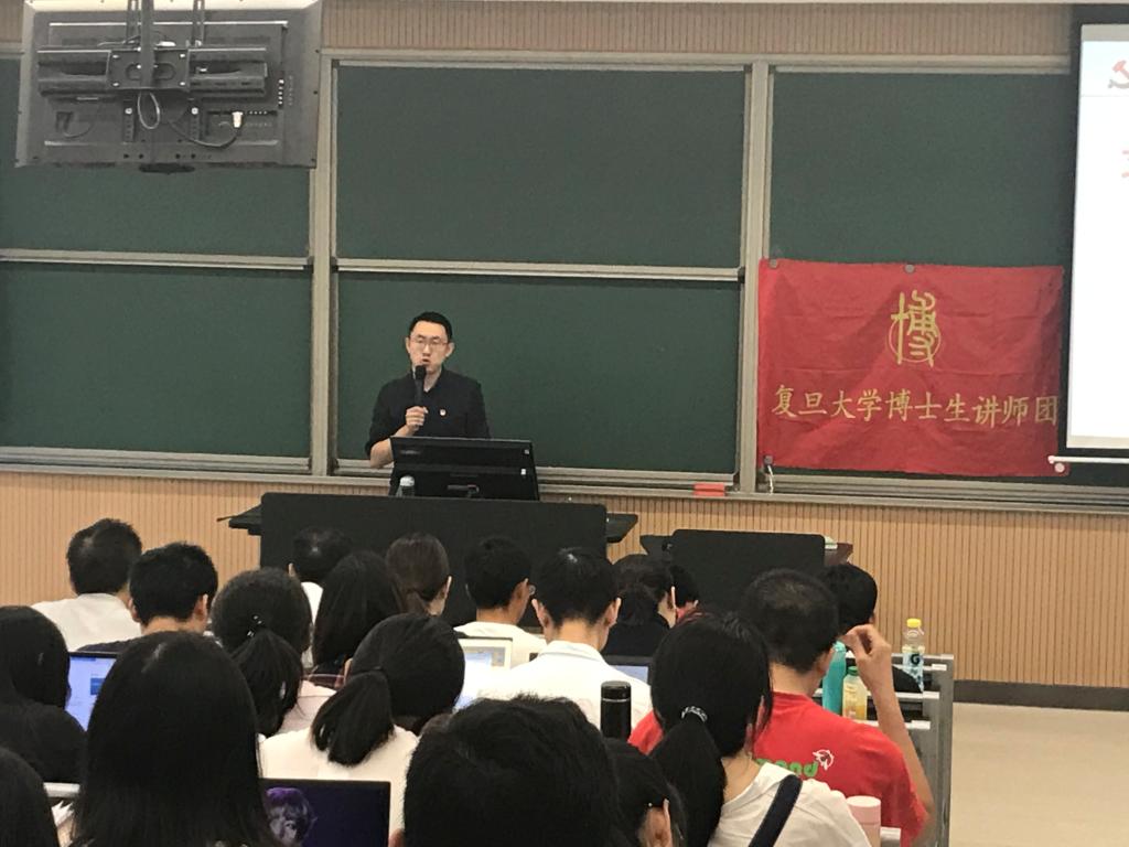 第二十九期入党积极分子培训班的学员在5114教室展开了第四次理论培训。本次培训的课程主题是“习近平新时代中国特色社会主义思想内在逻辑与丰富内涵”,由来自复旦大学博士生讲师团的田博毅老师担任主讲人。