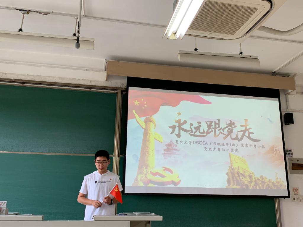 一班党章学习小组于班会结束以后开展班级党章学习活动。在党章学习活动之中,党章学习小组的同学通过知识问答形式学习党的纲领和执政理念,提高对于中国共产党的认知水平,丰富并先进自己的思想。本次活动由2019级人妻