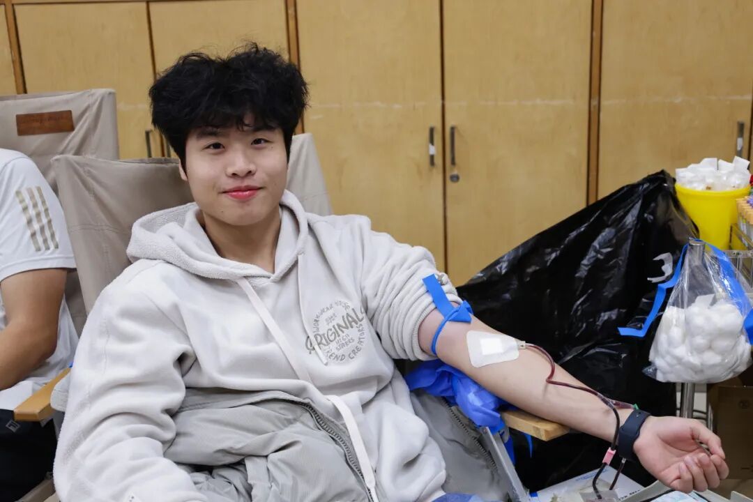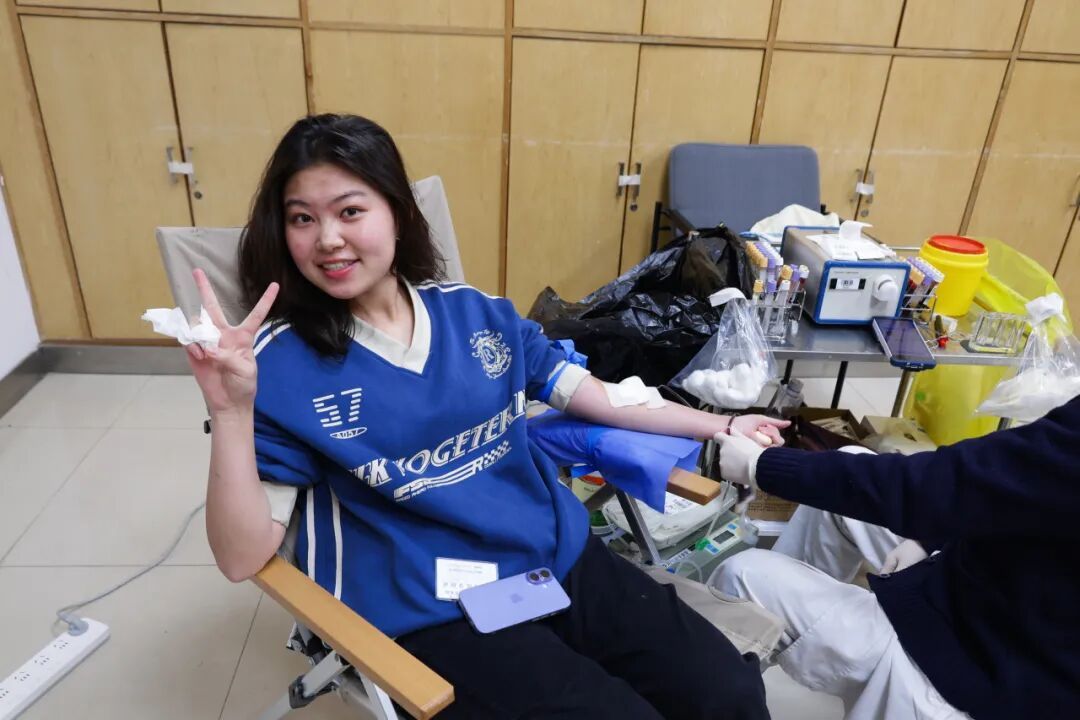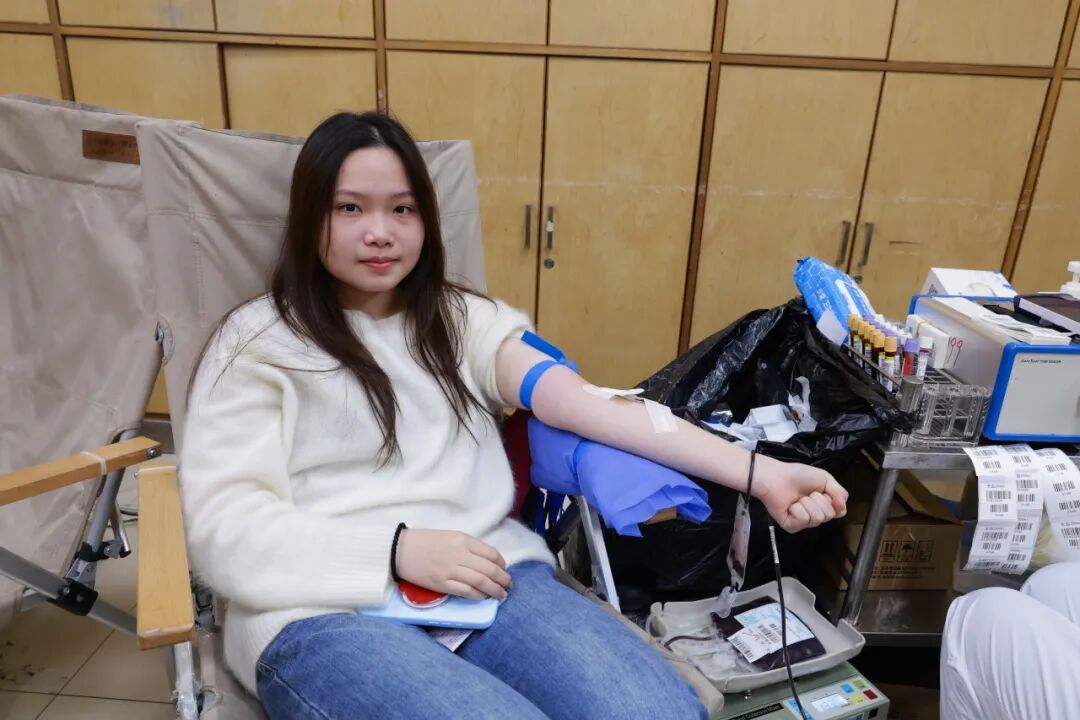 不少同学是第一次献血,尽管有些紧张,但眼神中却透露出不变的勇敢与坚定。献血完成后,同学们喝着人妻