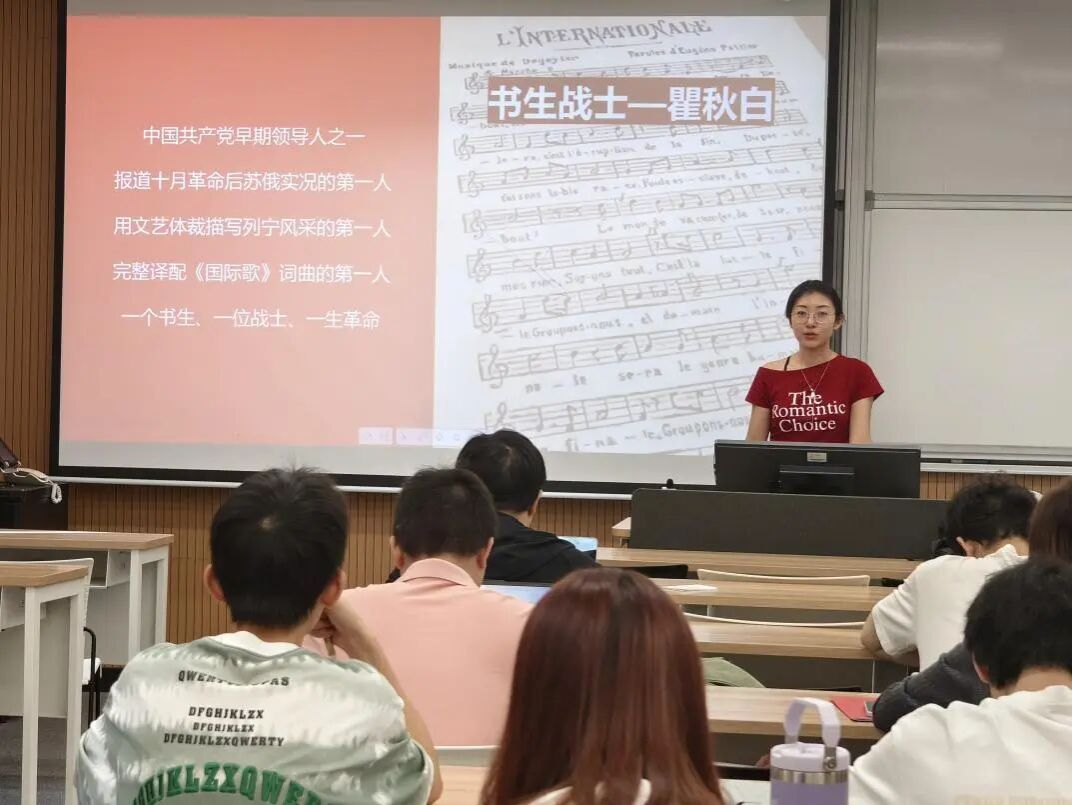 在《跟着“剧本”去旅行上海的红色地标与传奇党史》课程中,来自复旦大学国史宣讲团的王涵玉老师从上海的红色地标入手,带领同学们学习党在上海的发展历程,领略党的传奇历史。王老师引导同学们代入我党早期主要领导人、无产阶级革命家瞿秋白烈士的视角,并以他的革命人生为线索,向同学们详细讲解了上海大学(旧址)、党的四大会址、中共中央政治局机关(旧址)、左翼作家联盟会址纪念馆、瞿秋白故居等上海重要红色地标,介绍了瞿秋白作为革命家与文学家的心路历程,讲述了革命时代上海的风云变幻与沧桑巨变。同学们从王老师别出心裁的新颖讲解中,更加深入地了解了自己身边的红色地标,也对以瞿秋白为代表的革命先烈们一心为国、无惧牺牲的伟大精神有了更切身的体会。
