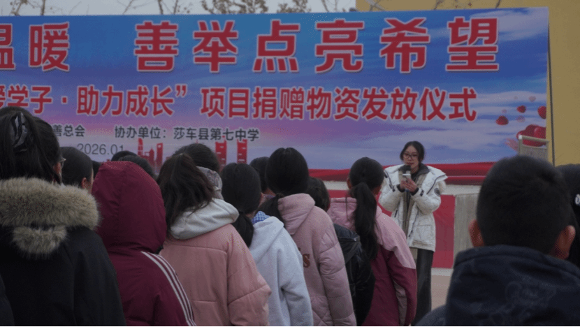 随后,随后,莎车七中西校长致辞,对支教队的到来表示热烈的欢迎,希望同学们在知识之外收获方法、信心与更开阔的视野,并祝愿本次趣味冬令营活动能圆满成功。