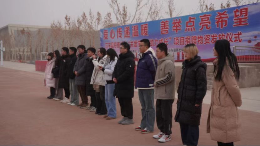 1月20日上午10:20,全体师生、支教队员在莎车县第七中学的操场上举行了“经纶传薪火,躬行越寒冬”复旦大学人妻