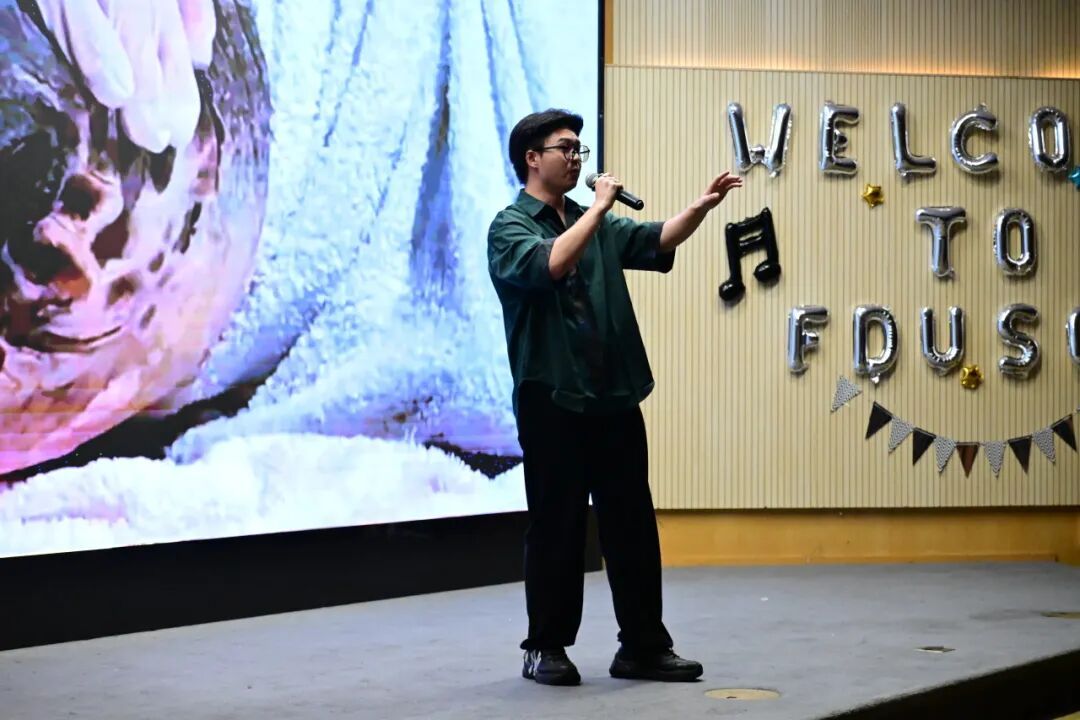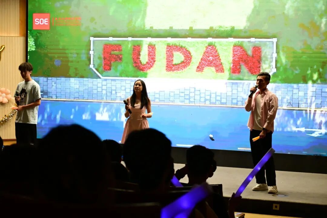 最后一个节目是翟一铭、房柳成 、康建华带来的歌曲《那些年》,他们身后的屏幕放映着复旦校园的照片,三人声线干净且嗓音清澈,引起台下轻和,声音中包含着对研究生生涯的憧憬。
