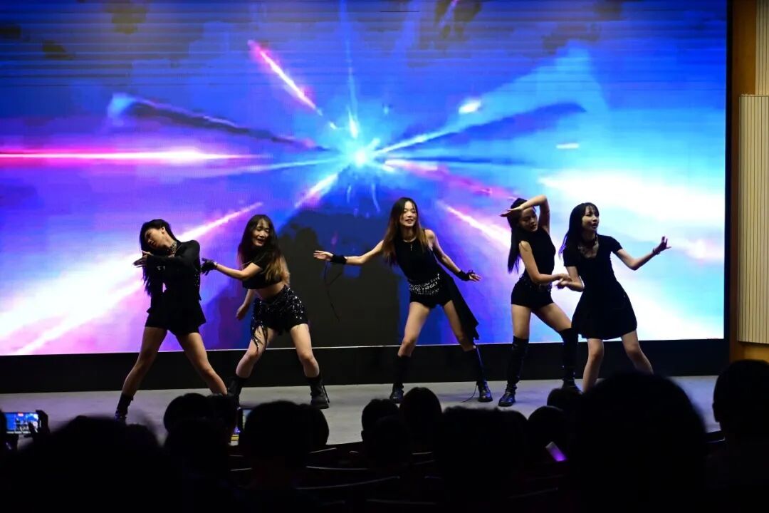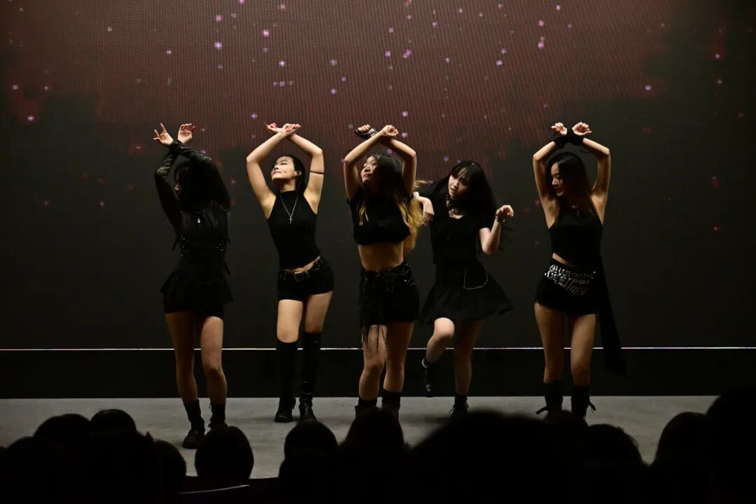 游戏过后,魏雨清、王紫嫣、刘婧祺、郭晨馨、苗可欣带来KPOP舞蹈《fearless》。利落有力的动作精准同步,抬手、卡点、踢腿间满是飒爽气场,队形切换流畅自然。她们眼神坚定、肢体舒展,把歌曲里的无畏感诠释得淋漓尽致,整个舞台都被这份鲜活的活力紧紧包裹。