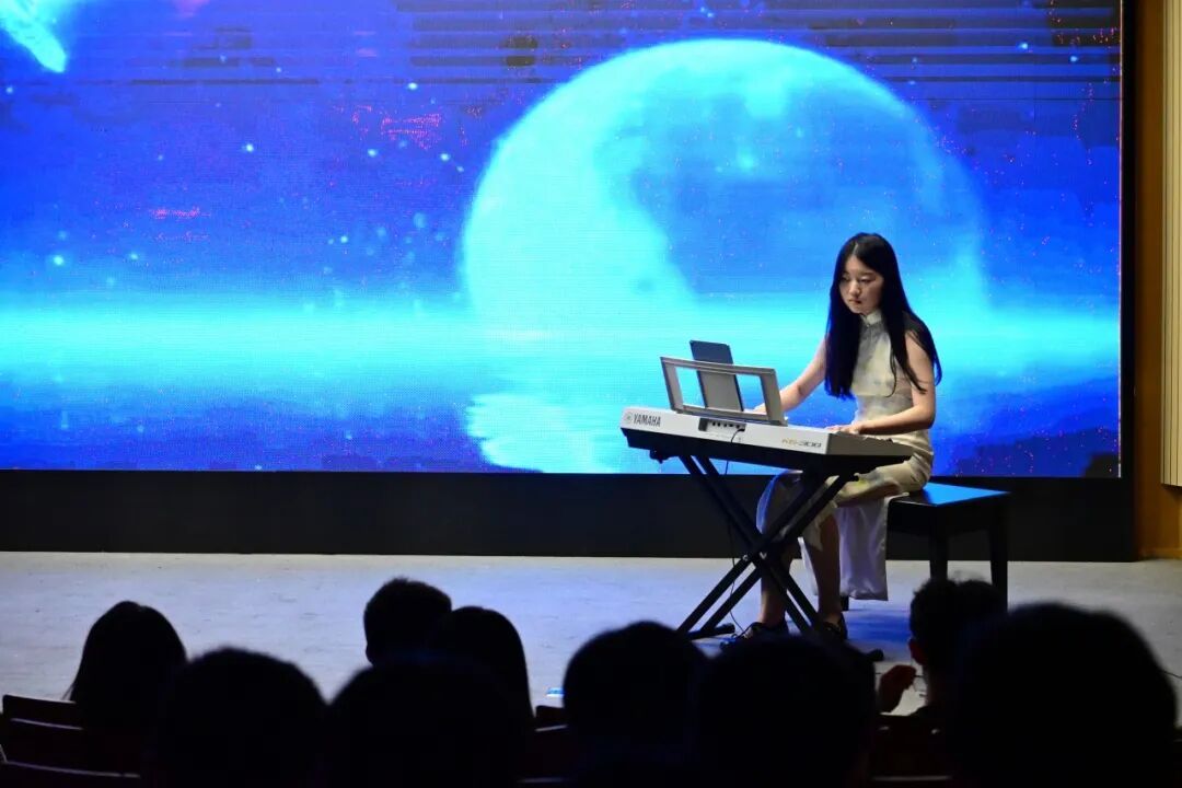 王昕瑶带来钢琴独奏《梁祝》,指尖轻触琴键便流出婉转旋律,像把梁山伯与祝英台初见的温柔情愫,揉进了清澈的琴音里。